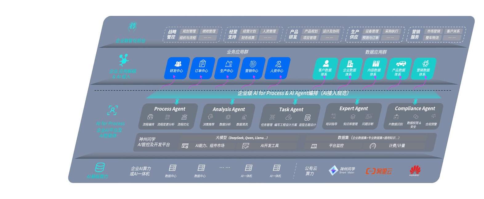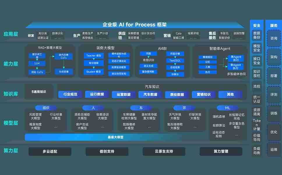 端到端的一站式AI工作空间深度融合了从企业战略规划到日常经营的全流程业务板块,,,定向解决车企内部领域多、、、、部门多、、、链条长、、、场景碎片化等难题,,,支持车企快速构建以AI为核心的生产力写作体系,,,,实现任务执行与AI能力的无缝集成与交互