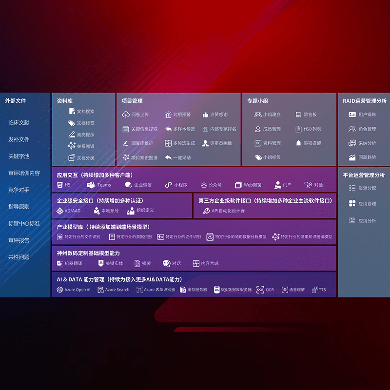 医疗器械产品上市前,,要熟悉严格与繁复评审标准,,,,整理分析监管机构指导文件中的海量信息。。。。企业急需一个智能化解决方案,,,,提升知识管理效率,,,提高评审通过率,,,以提升其市场竞争力。。。。